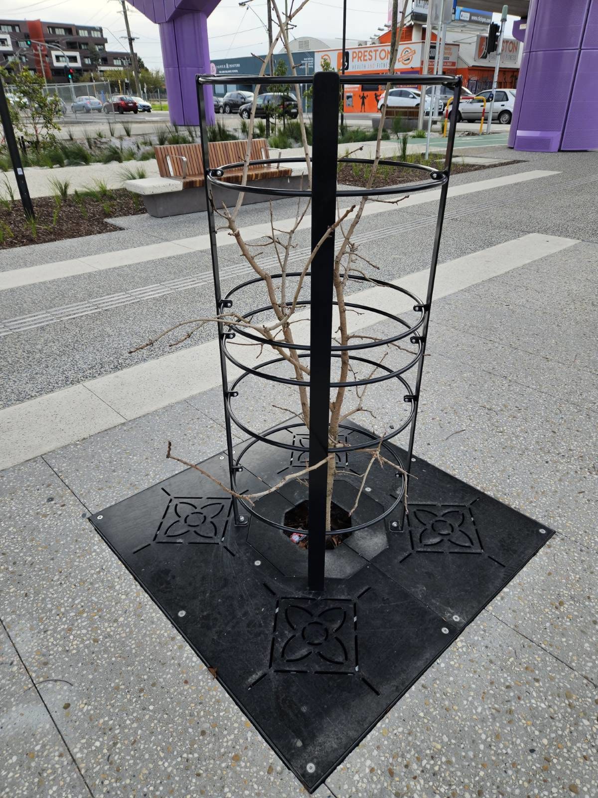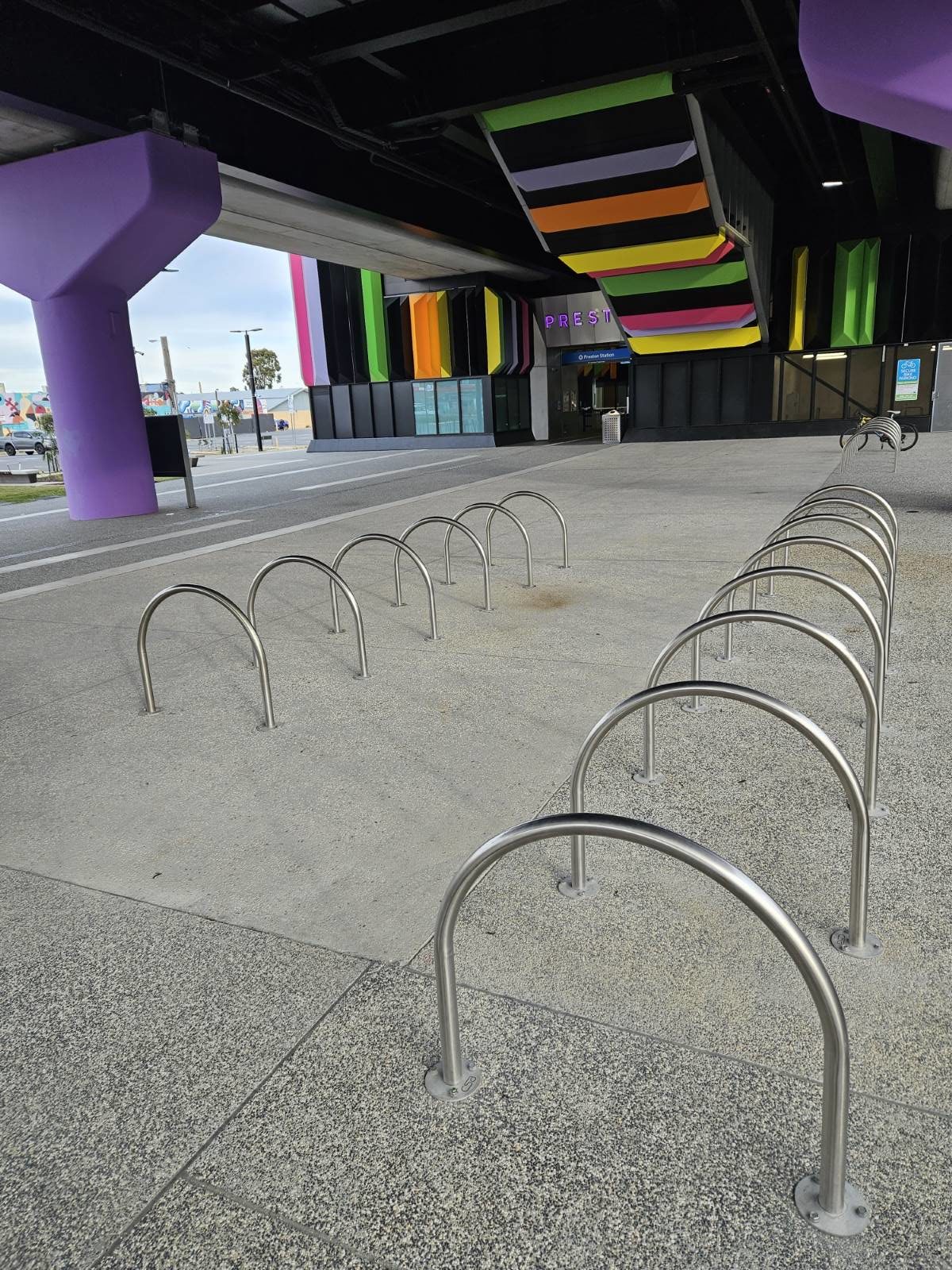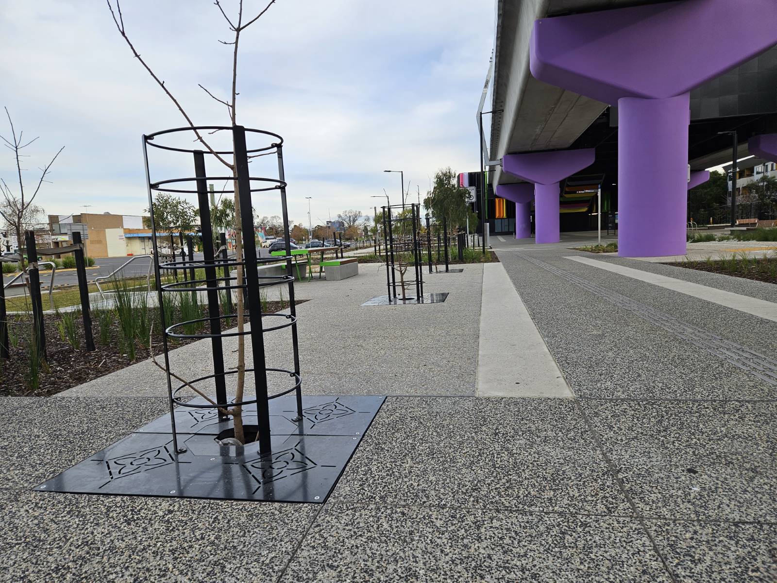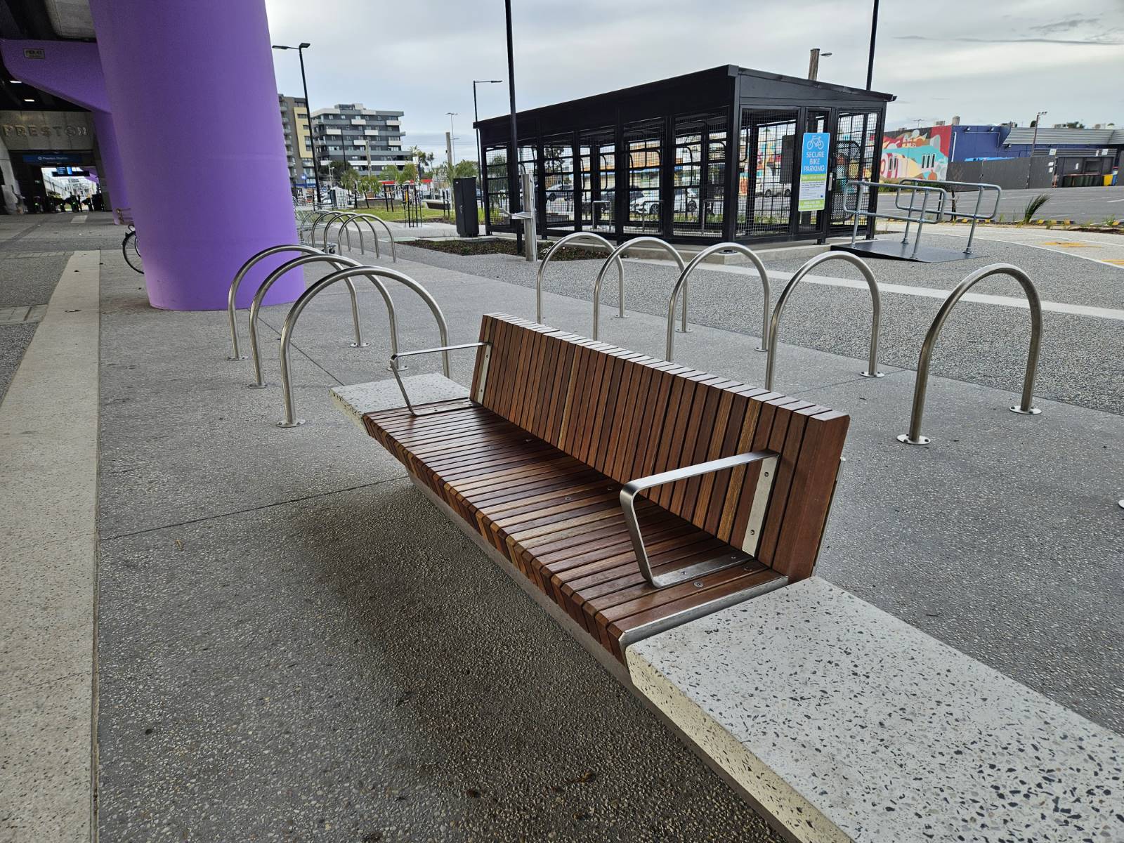Supply of a complete suite of furniture items for the level crossing removal program. For the Bell & Preston stations, CSA supplied wall mounted seating. bench and table sets, bike racks, tree guards and grates with the station platform seating.