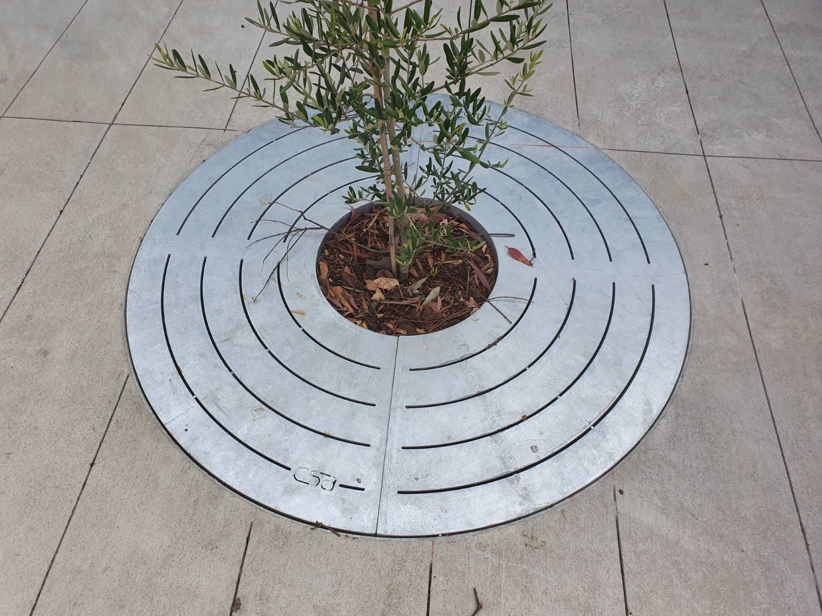 Custom suite of wall mounted seating and benches, tree grates and bollards