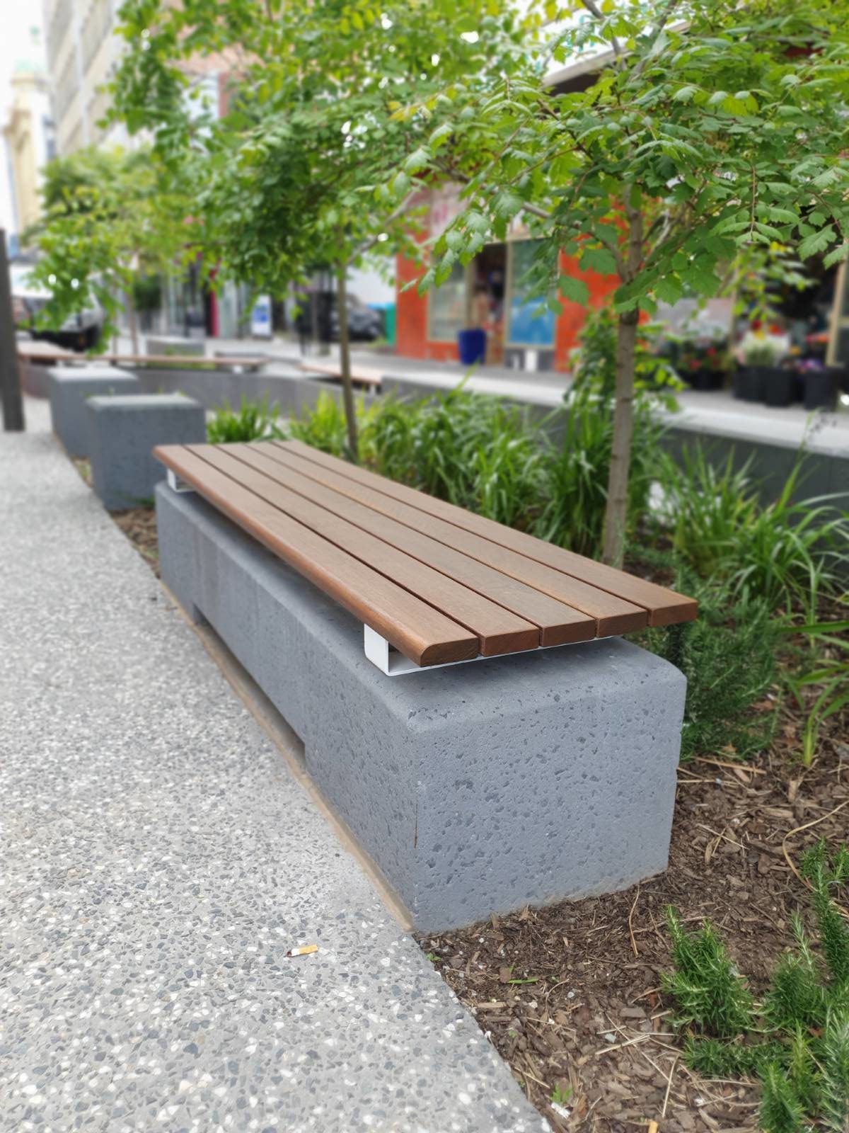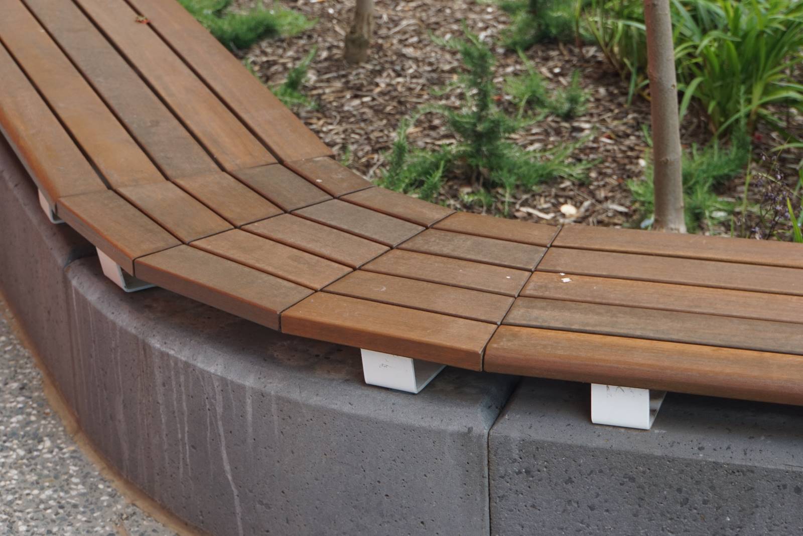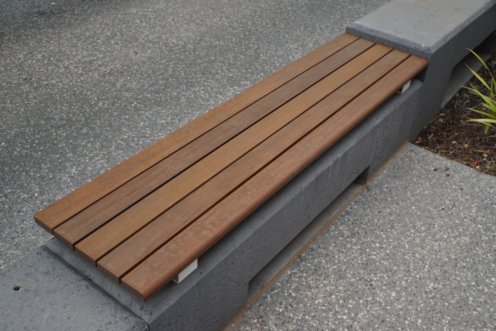 A selection of wall mounted benches and seating for the park development in Cato Street, Prahran