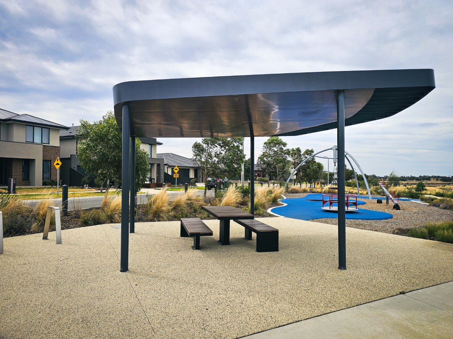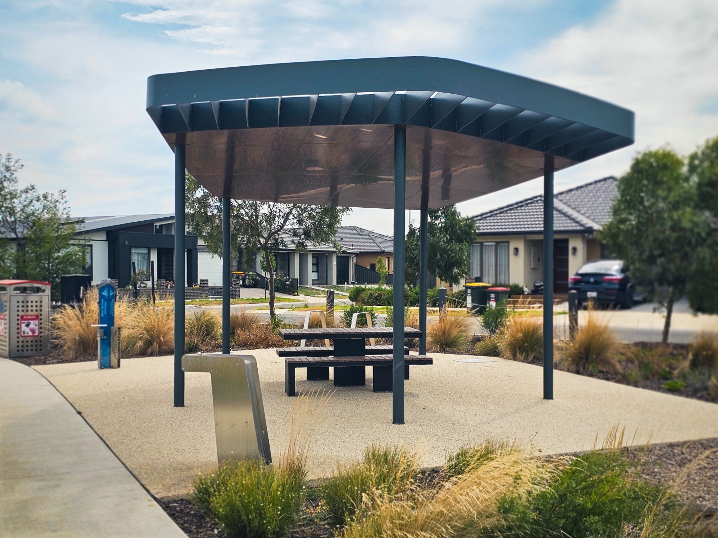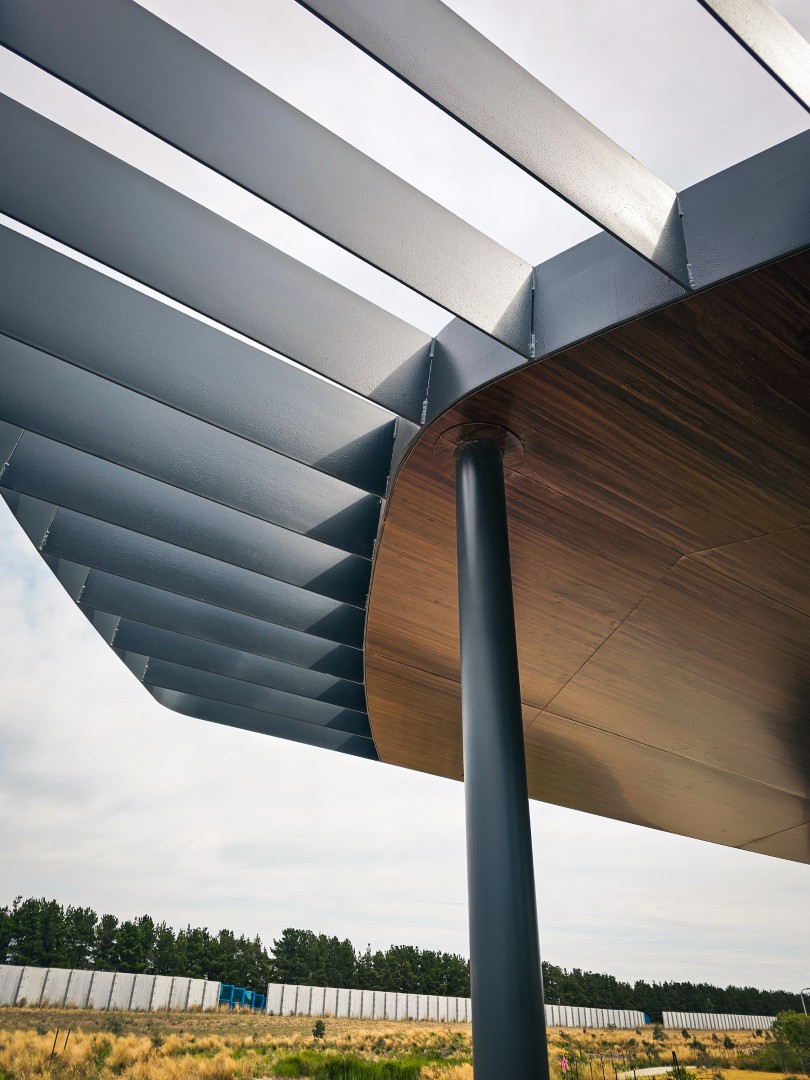 CSA were selected to design, construct and install a custom shelter with woodgrain ceiling cladding and integrated gutter. The intent was to retain similar design aesthetics with neighbouring shelters in nearby parks. Challenges in the design were to provide a shelter with ceiling and have no visible fixings. The obscure shape and fall in the roof lead to complex design solutions.
