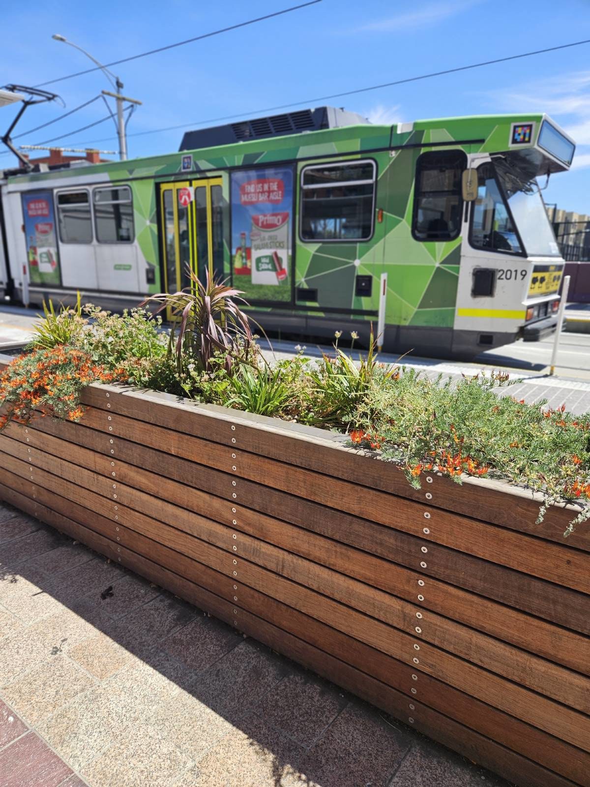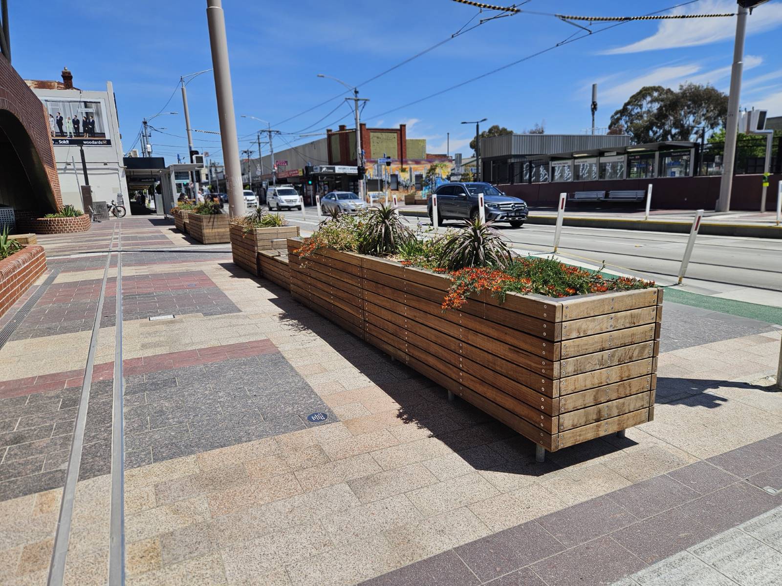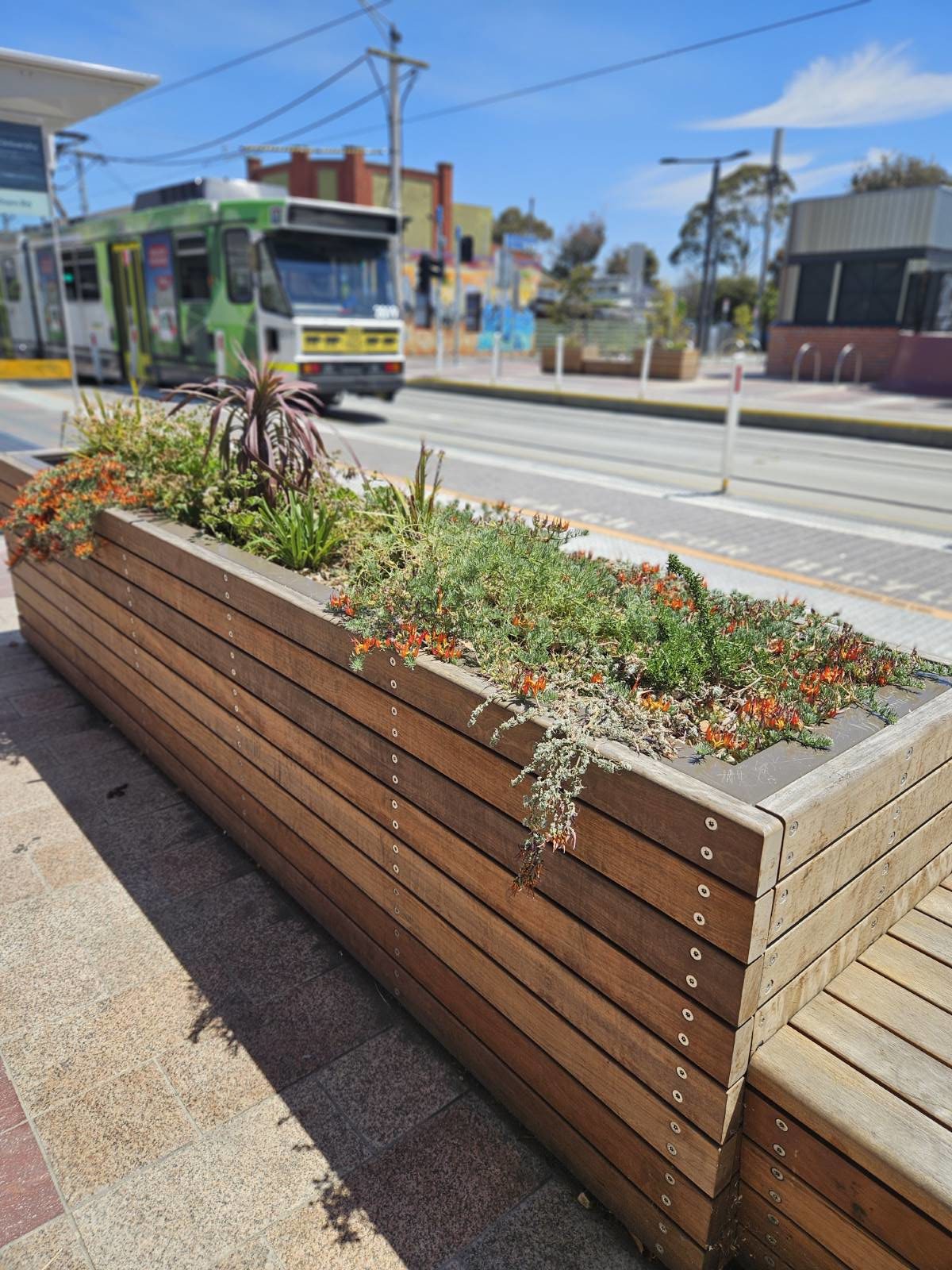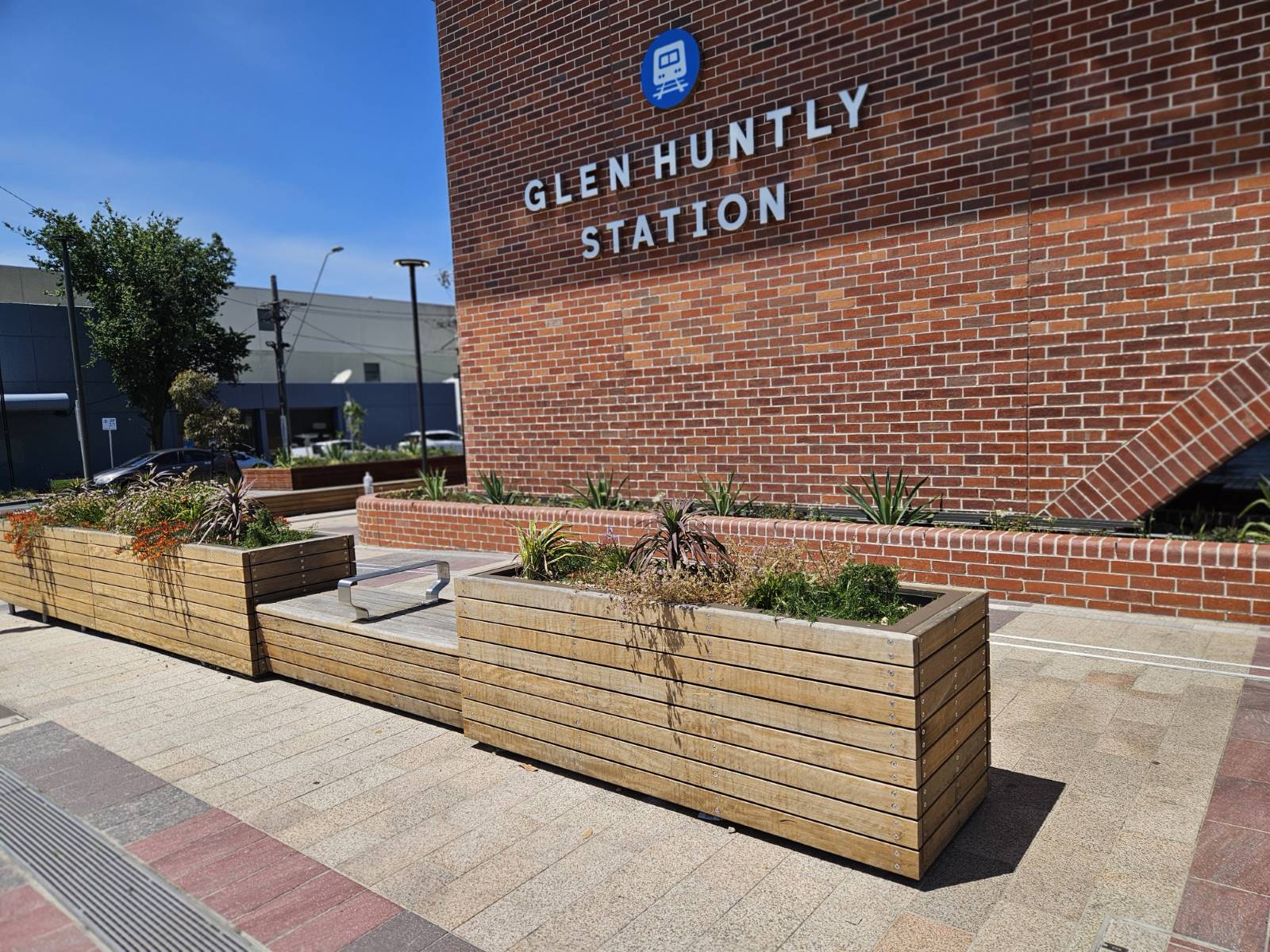 To go with the stainless steel platform seating and the bespoke timber seating at the stations entrance to the station, CSA also later supplied some heavy duty planters to complete the area.