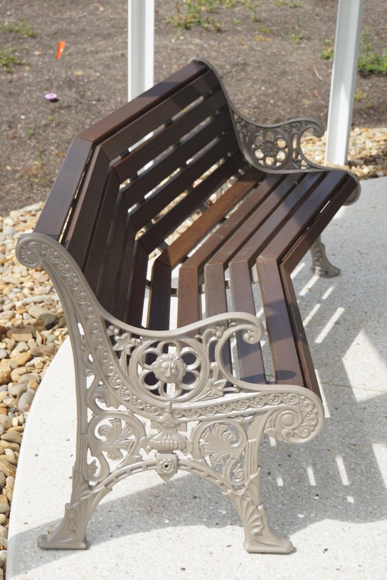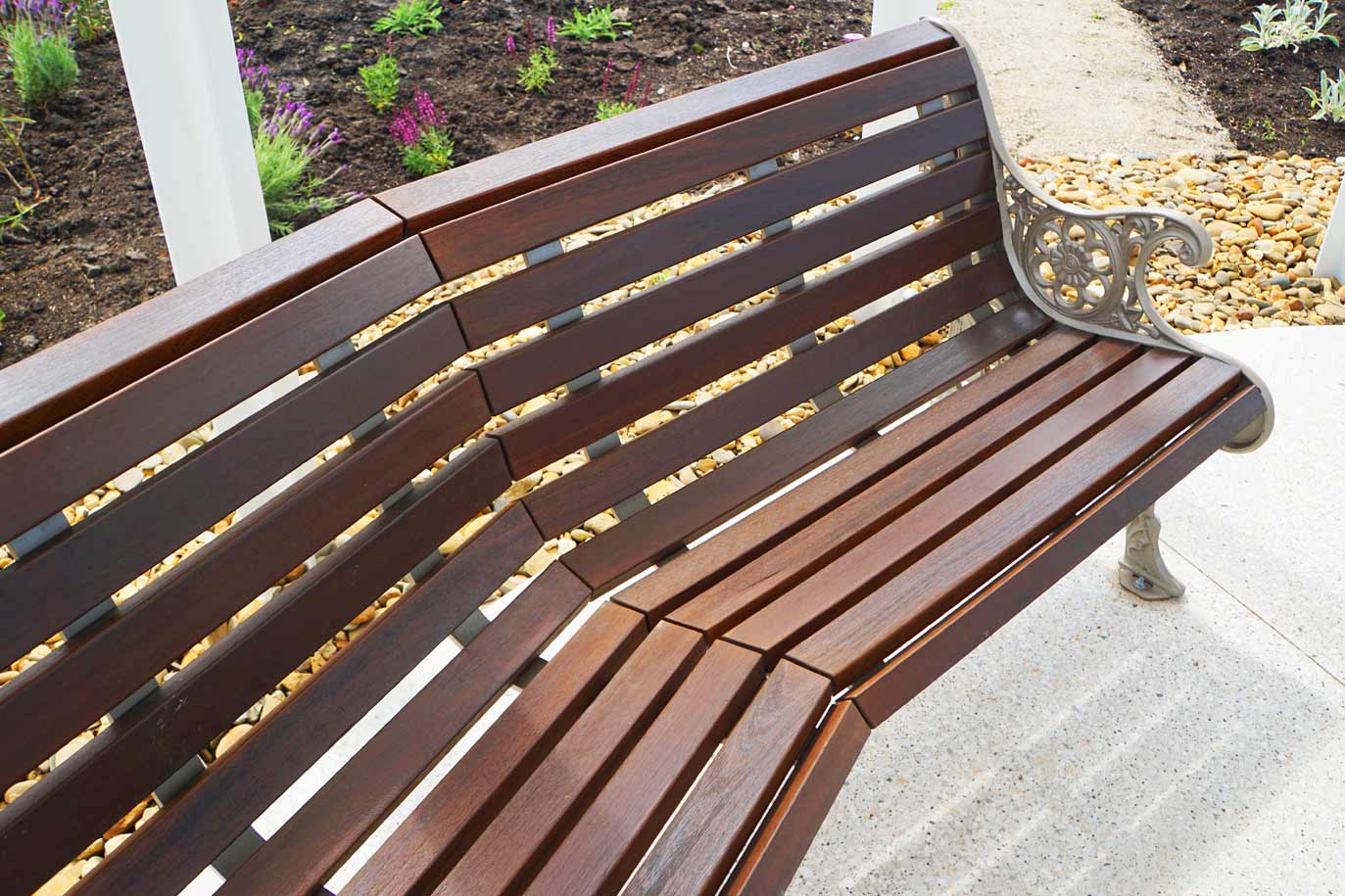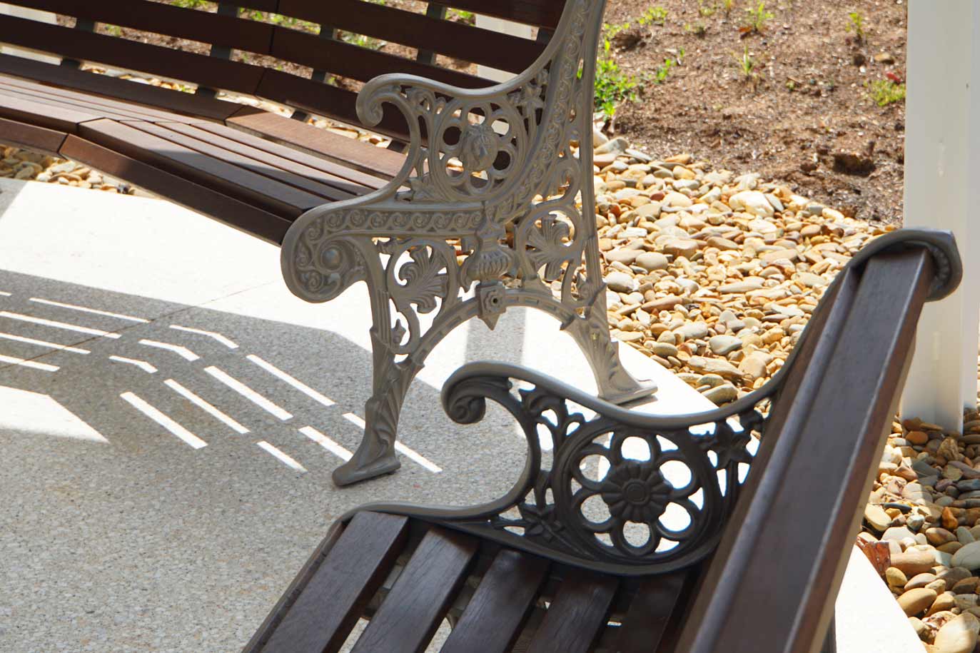 For the battens, we selected spotted gum hardwood, a durable Australian timber known for its strength and rich coloring, ensuring the refurbished furniture could endure outdoor conditions while offering a high-quality finish. Once assembled, the cast iron frame was finished with a fresh coat of Dulux Sensational Champagne powder coating, chosen for its elegant, subtle metallic sheen. This finish not only enhances the aesthetic appeal but also provides excellent weather resistance, protecting the structure from future corrosion. The blend of natural timber and metallic powder coating creates a striking visual contrast, making the refurbished furniture a functional yet artistic addition to the park.
