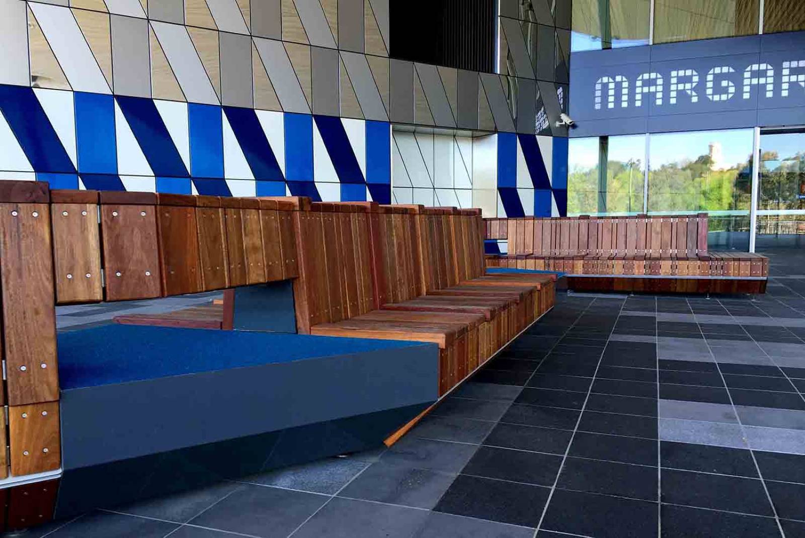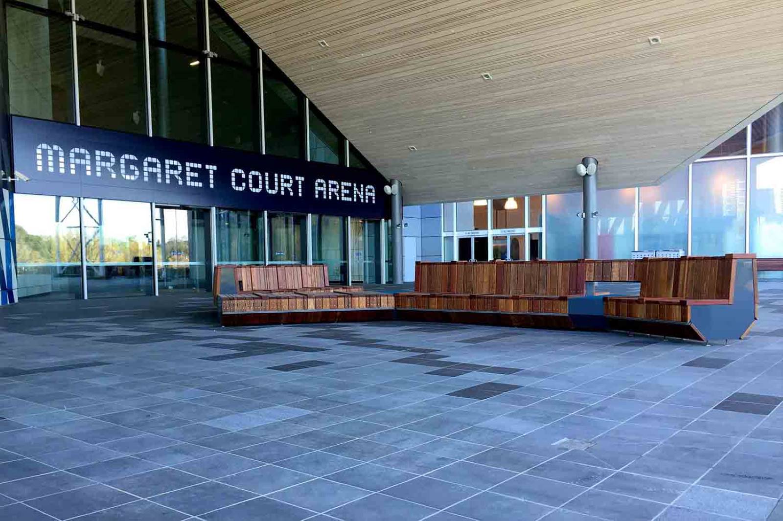 This giant feature seat was created as the perfect entry way feature for Melbourne Park. Its intricate design and angles matching perfectly with the adjacent building.