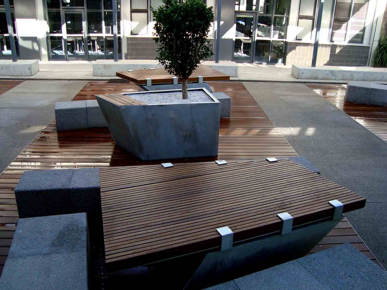 A range of irregular polygon benches, tables and planter benches were created for Mentone Grammar