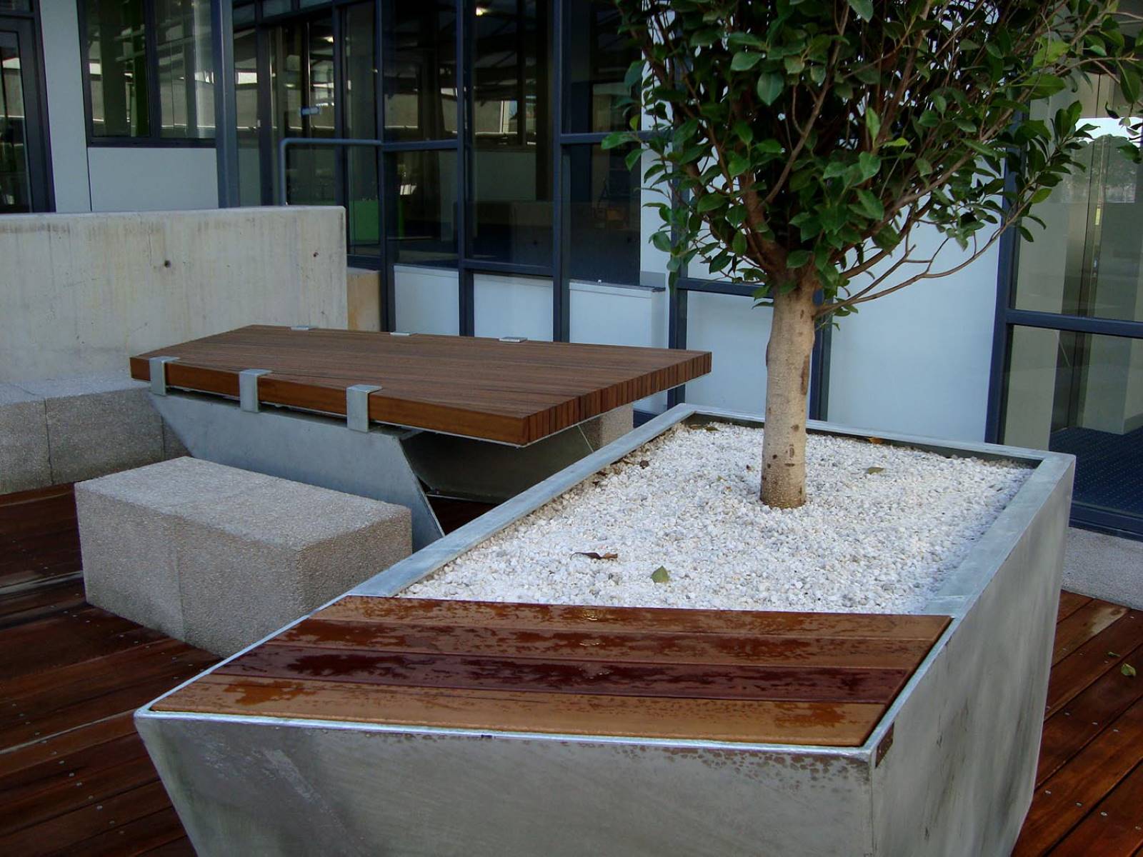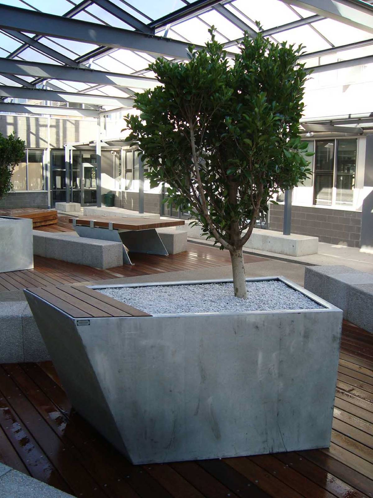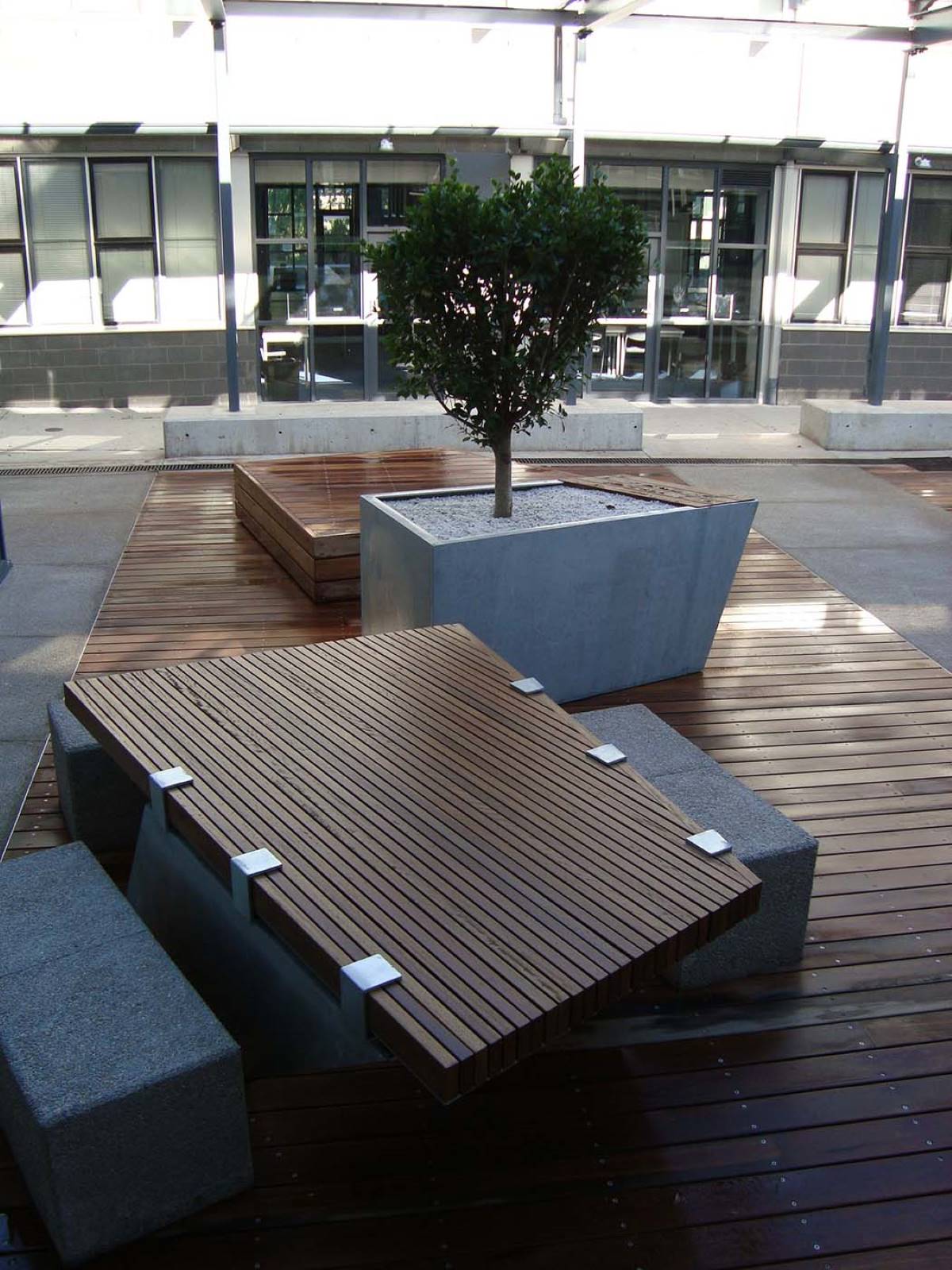 Tables and planters were made for Mentone grammar in an updated courtyard to sit around concrete wall seating.