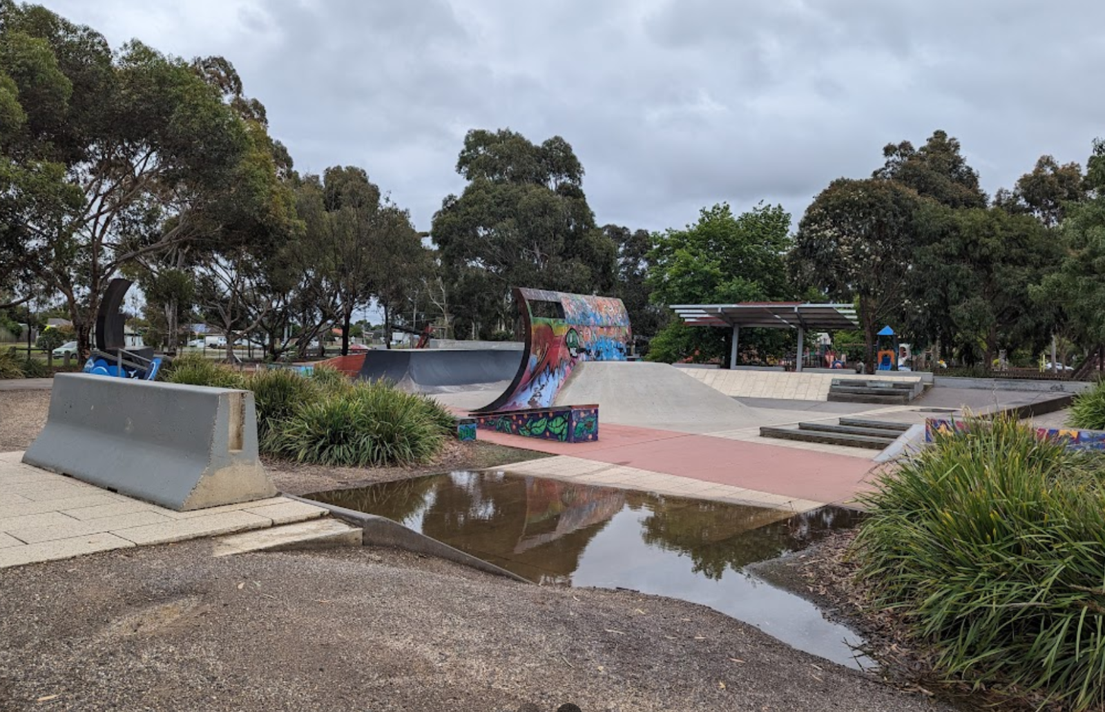 A Unique cantilevered shelter was proviced for the new skate park at Presidents Park in Wyndham Vale. The shelter was mild steel, hot dipped galvanised and topped with dual layers of different coloured perforated sheet.