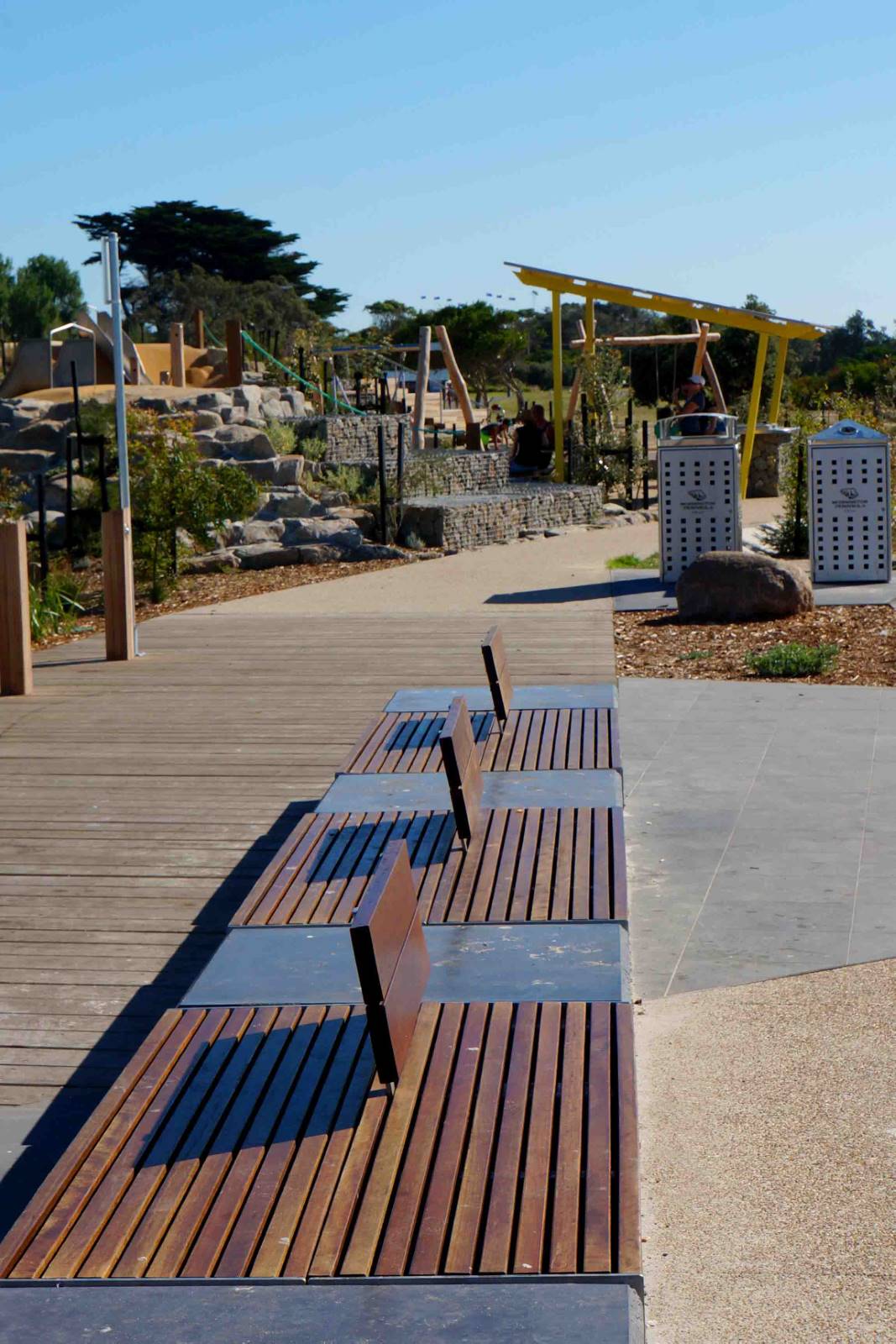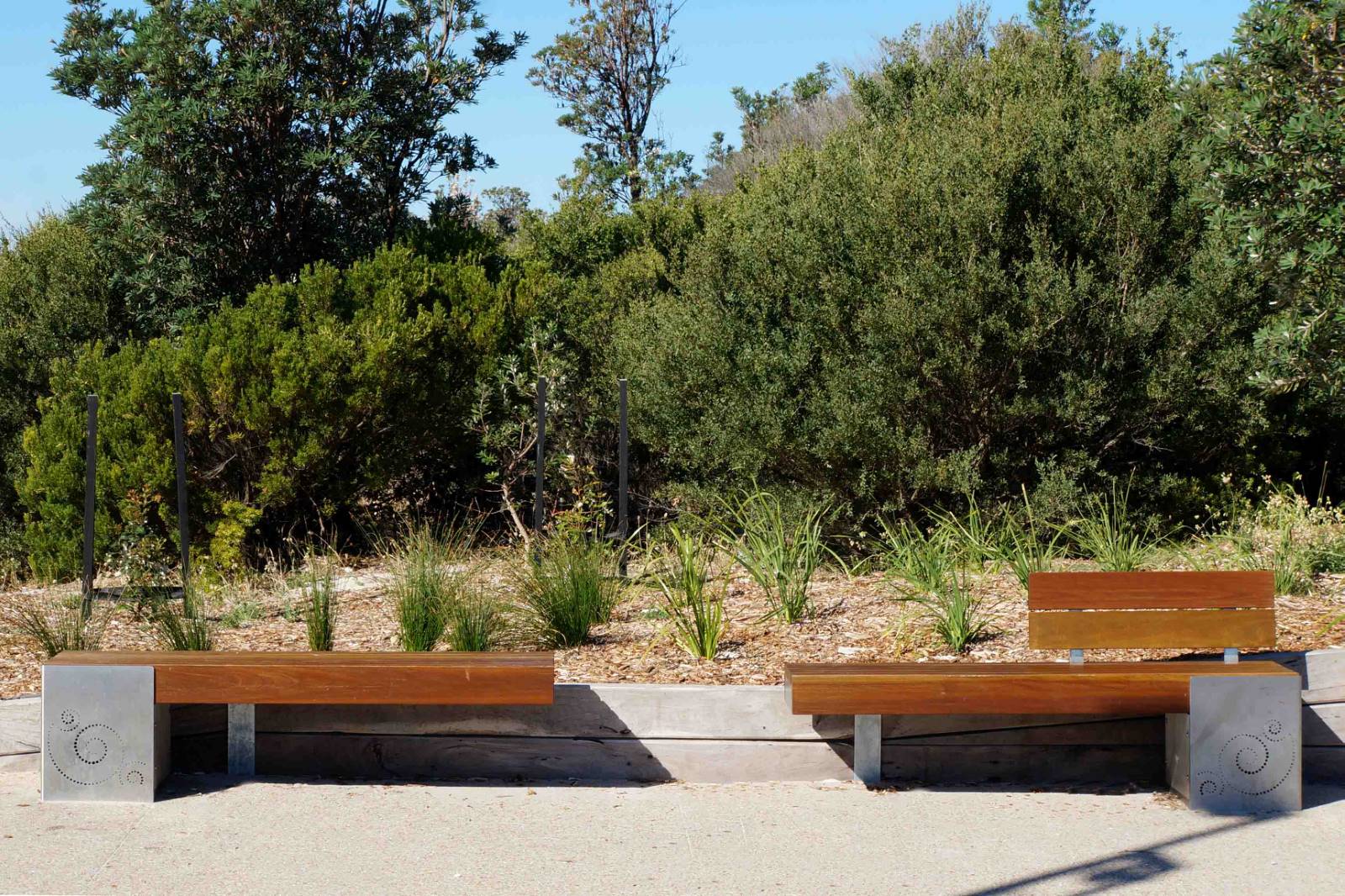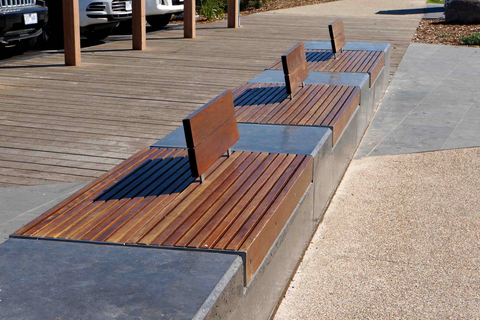 316 Marine Grade stainless steel furniture with Australian Spotted Gum battens at the entrance to the foreshore at Rosebud pier.