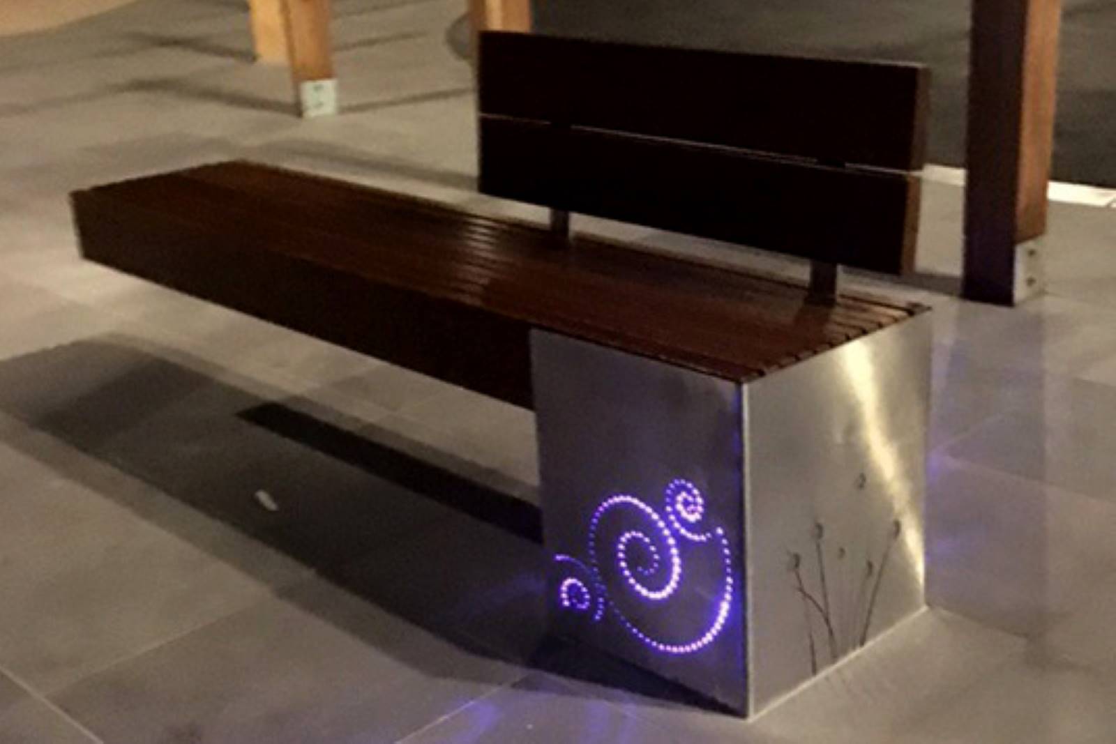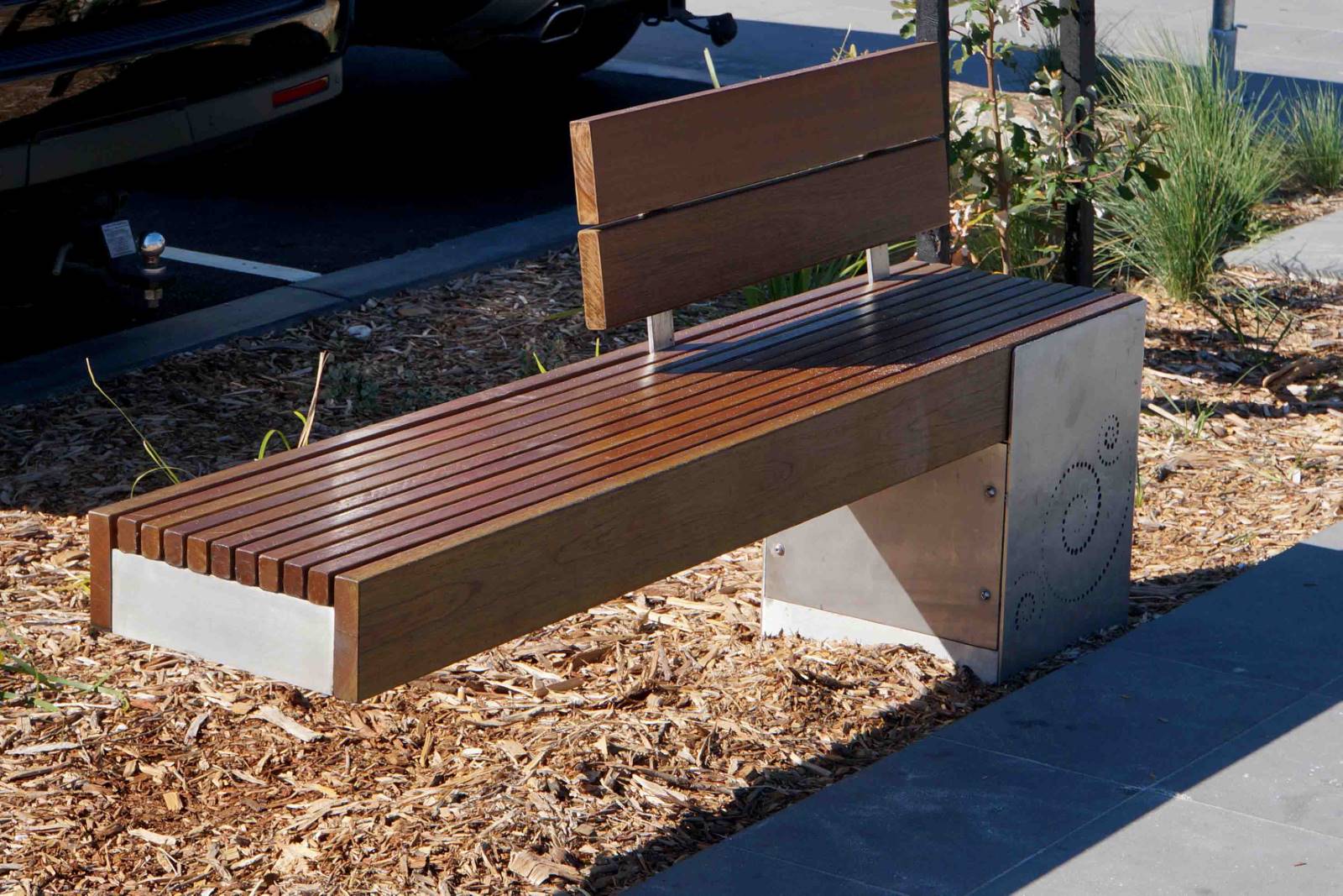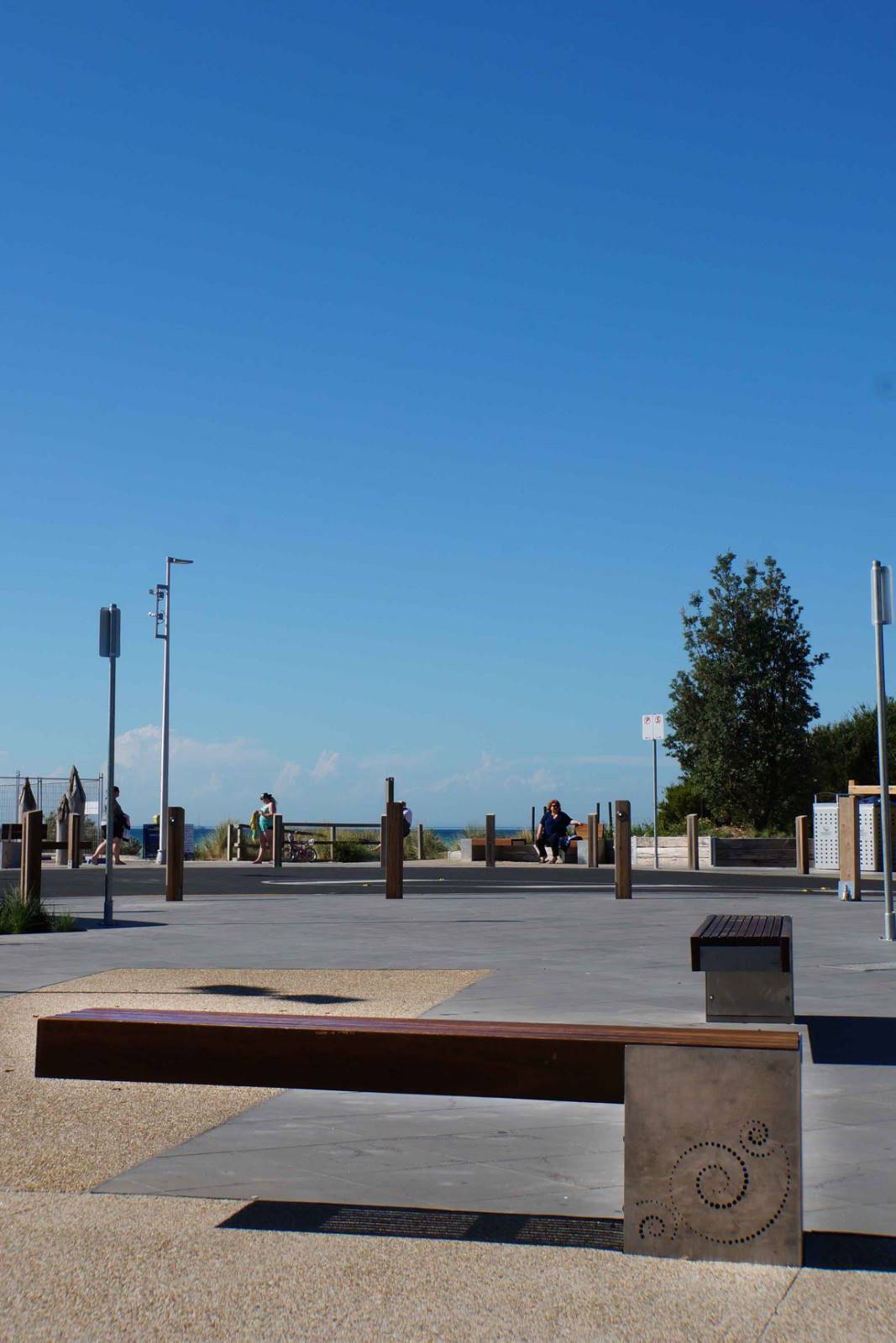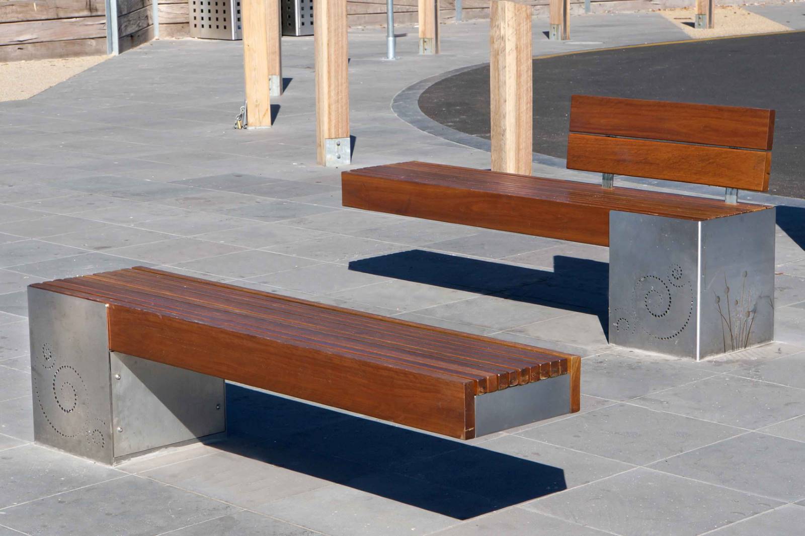 316 Marine Grade stainless steel furniture with Australian Spotted Gum battens at the entrance to the foreshore at Rosebud pier.