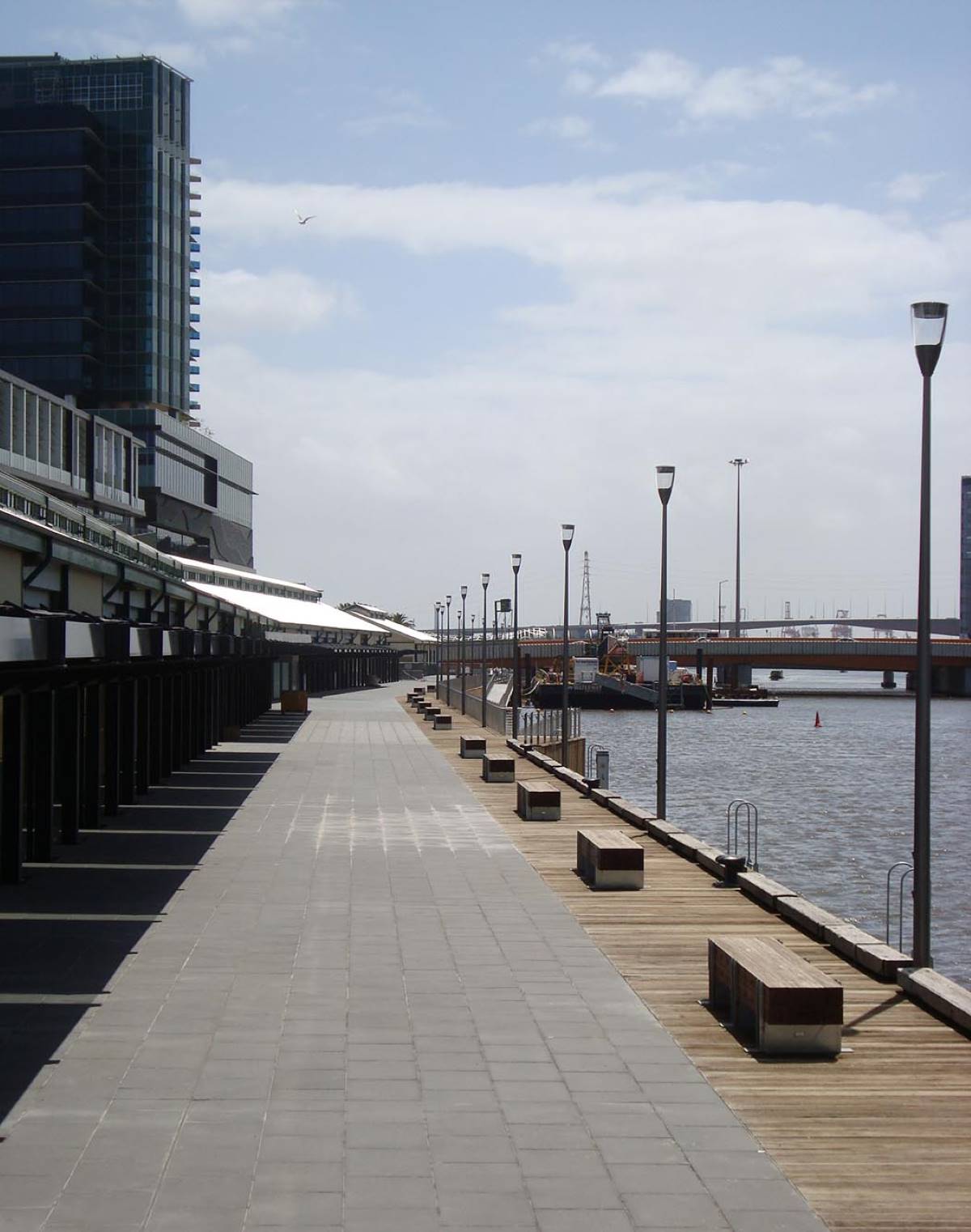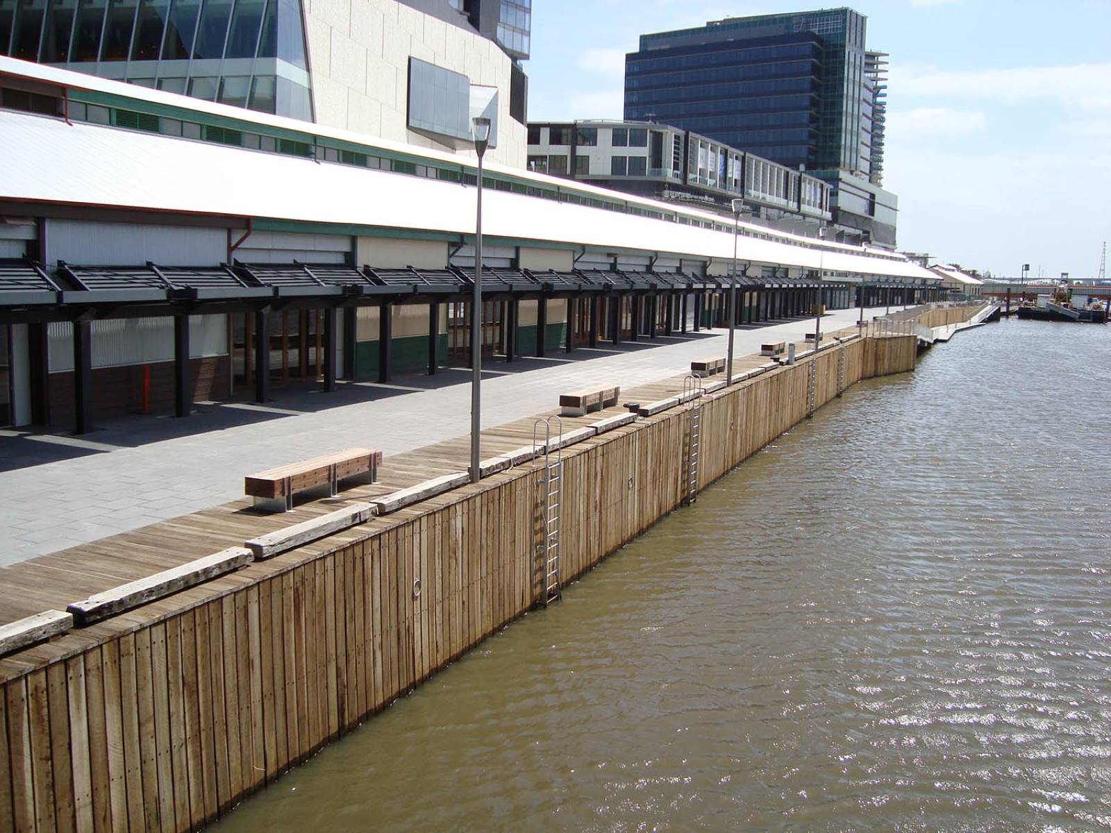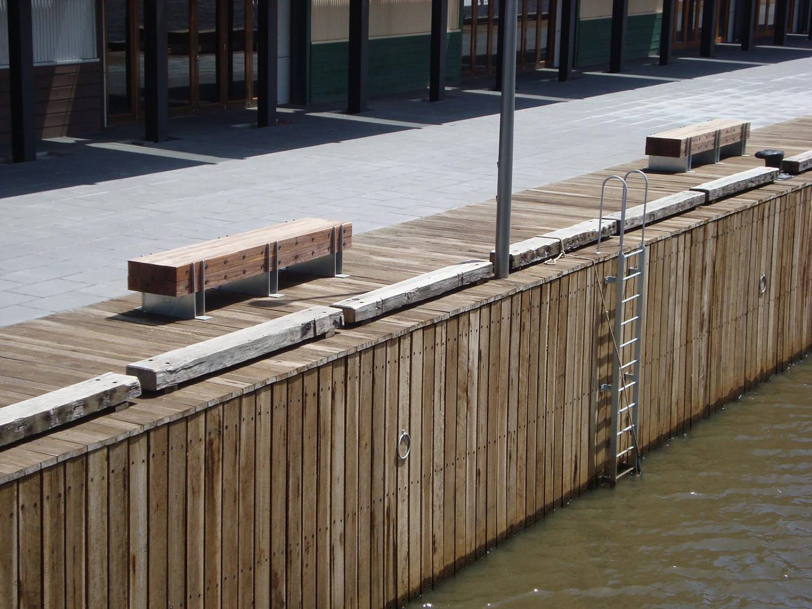On the side of the Yarra river in South Wharf, CSA manufactured a multitude of recycled timber benches along the water in the new development. The large timbers were sourced and reclaimed from a local wharf for the use on this project.