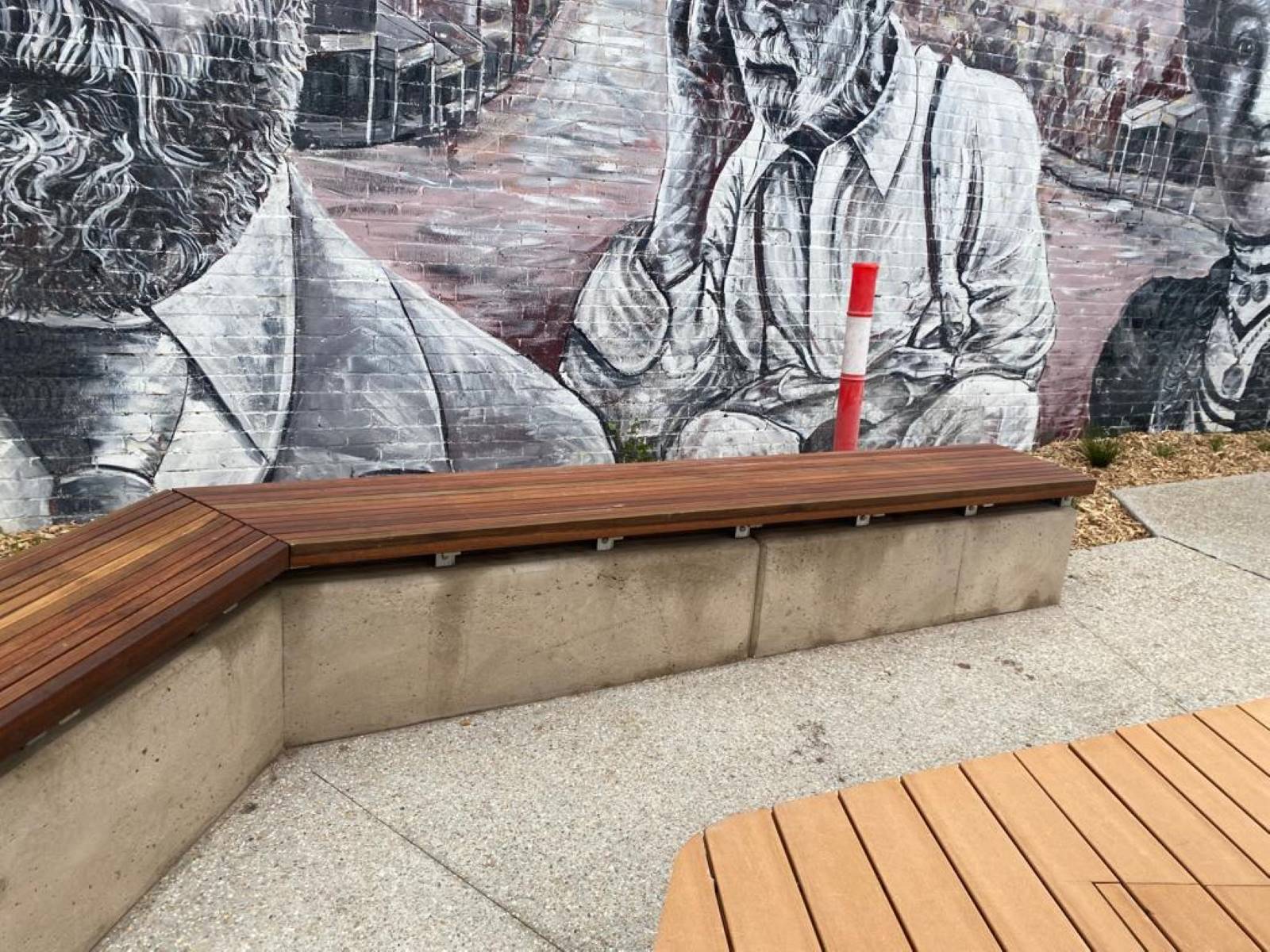 Custom seating elements for the entrance to the new Union Station as part of the rail crossing removal projects.