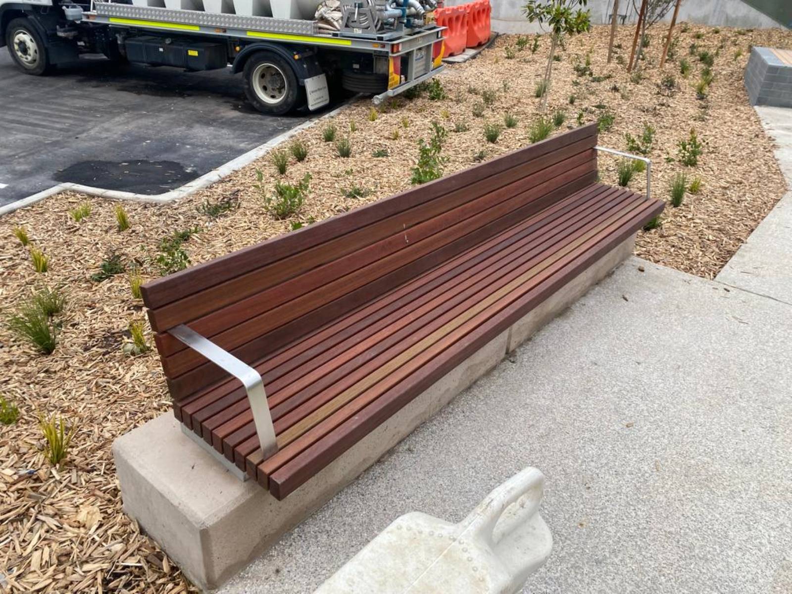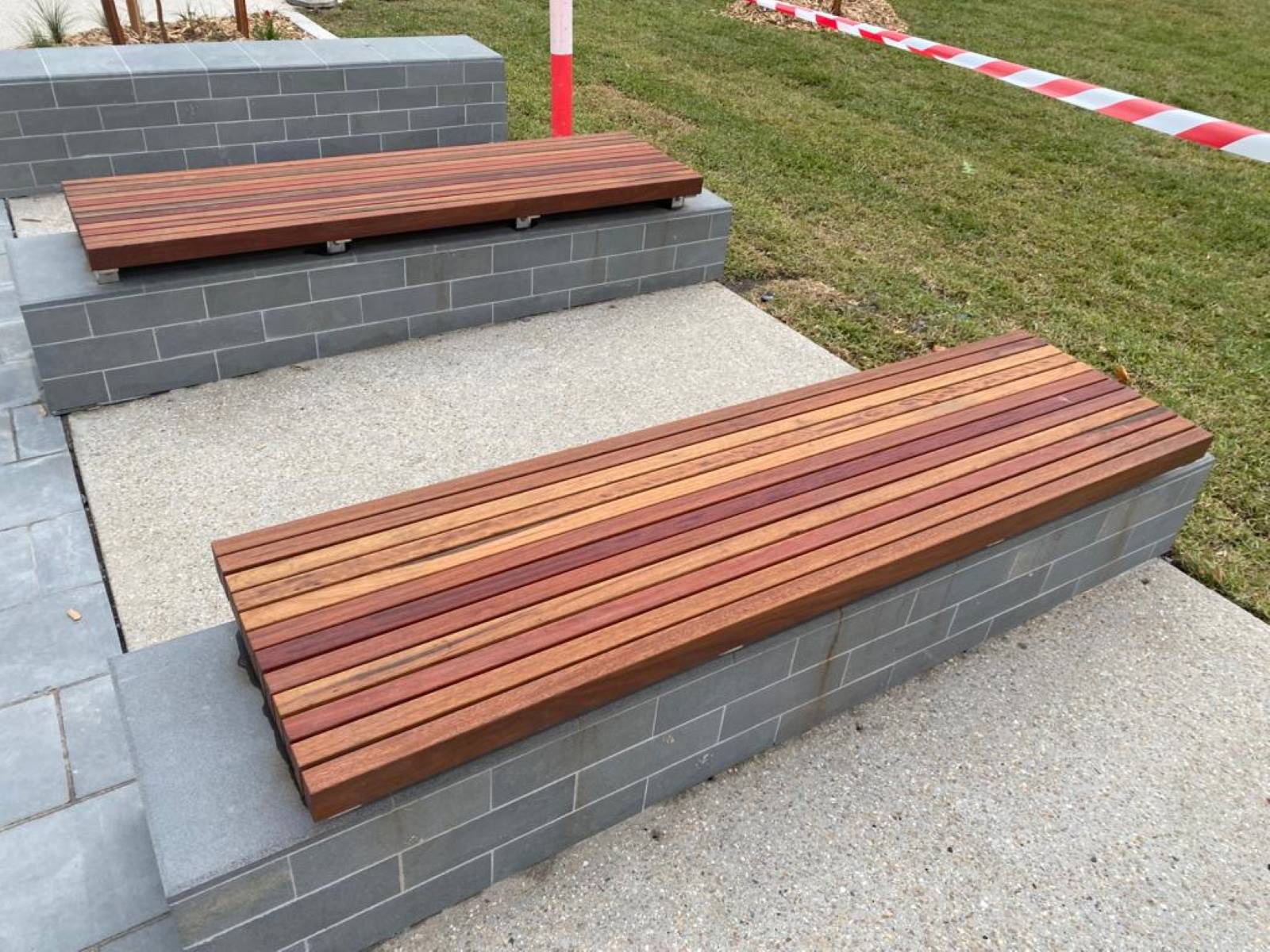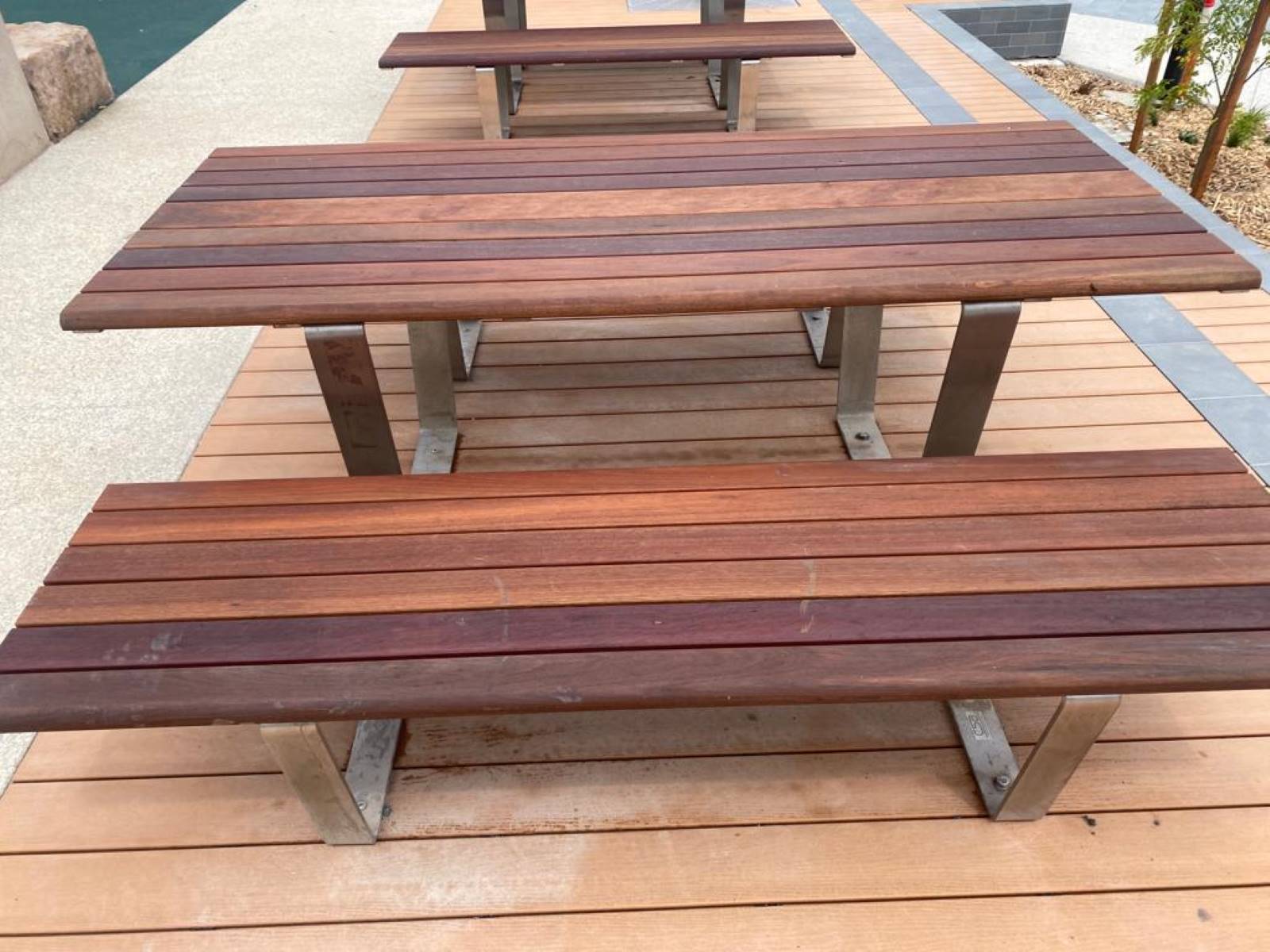 Mild steel hot dipped galvanised frame with Australian Spotted Gum battens.