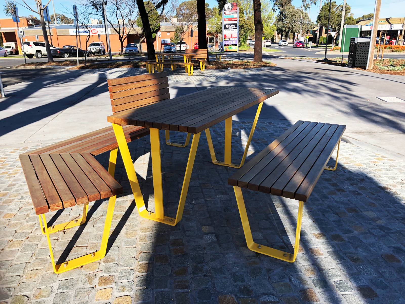A customised version of CSA's Manhattan furniture was created for Webb Street in Narre Warren to create the vibrant shopping strips seating solutions.